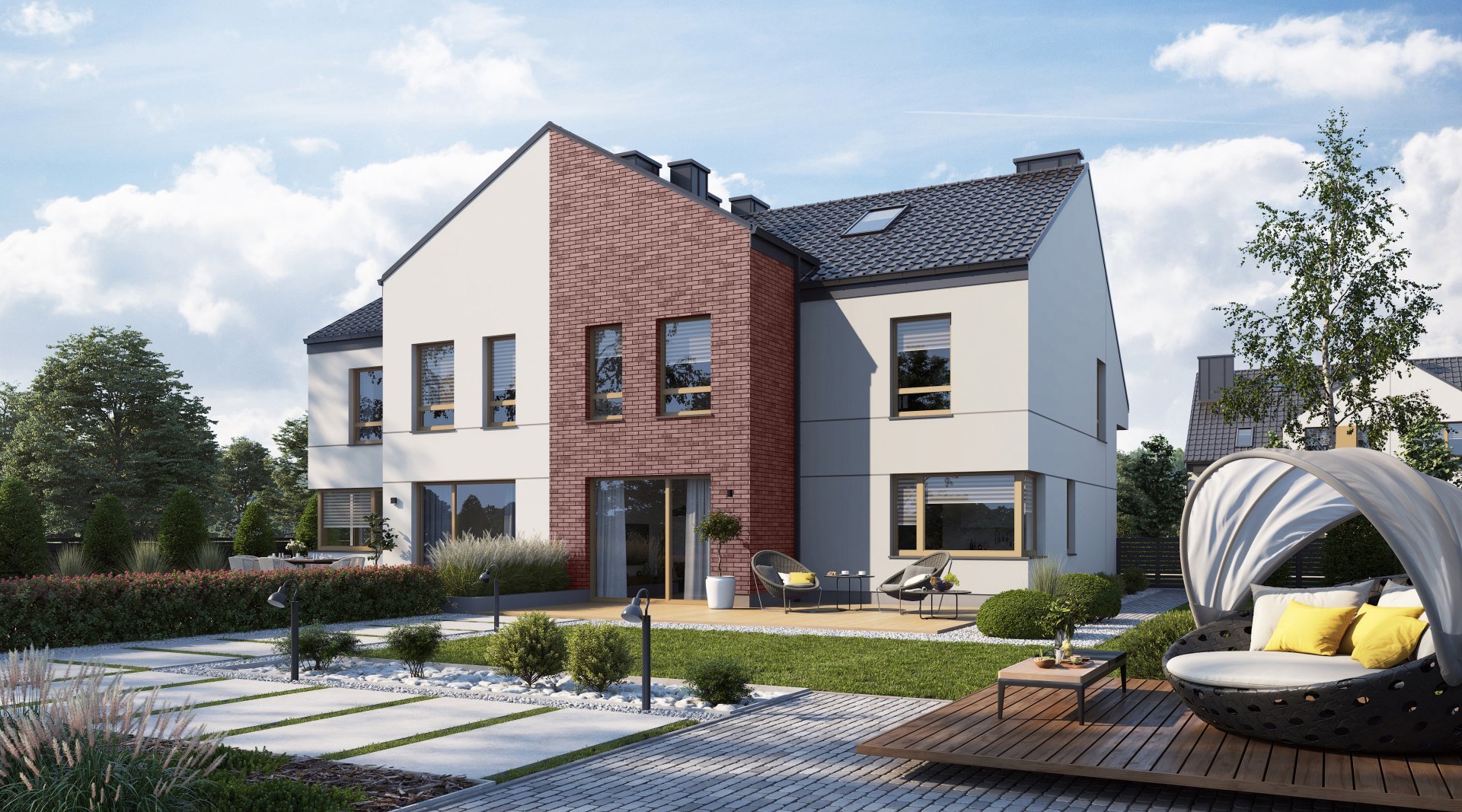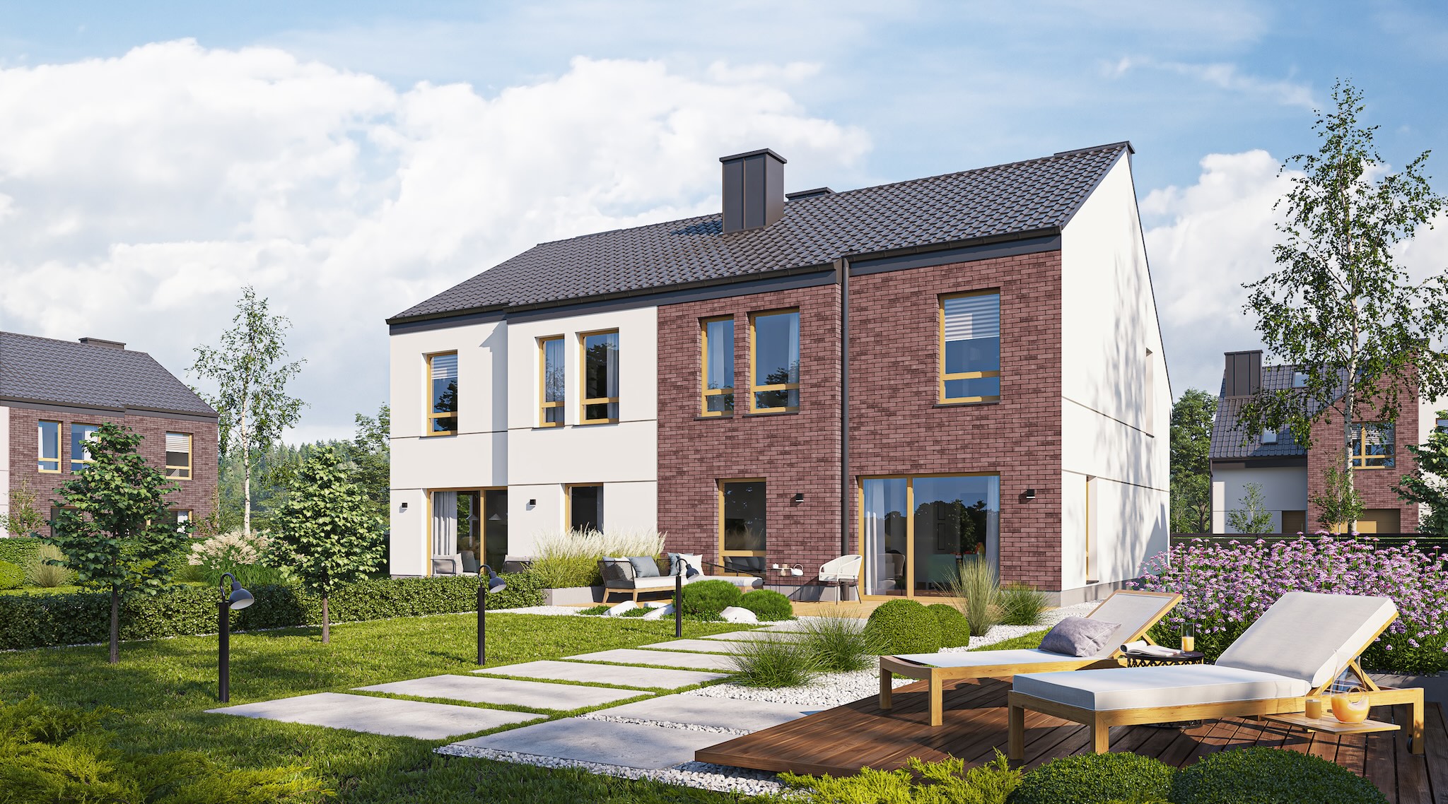 Grand House Premium to nowoczesny dom w zabudowie jednorodzinnej dwulokalowej o powierzchni 160,5m² składający się z dwóch kondygnacji oraz poddasza z możliwością adaptacji.