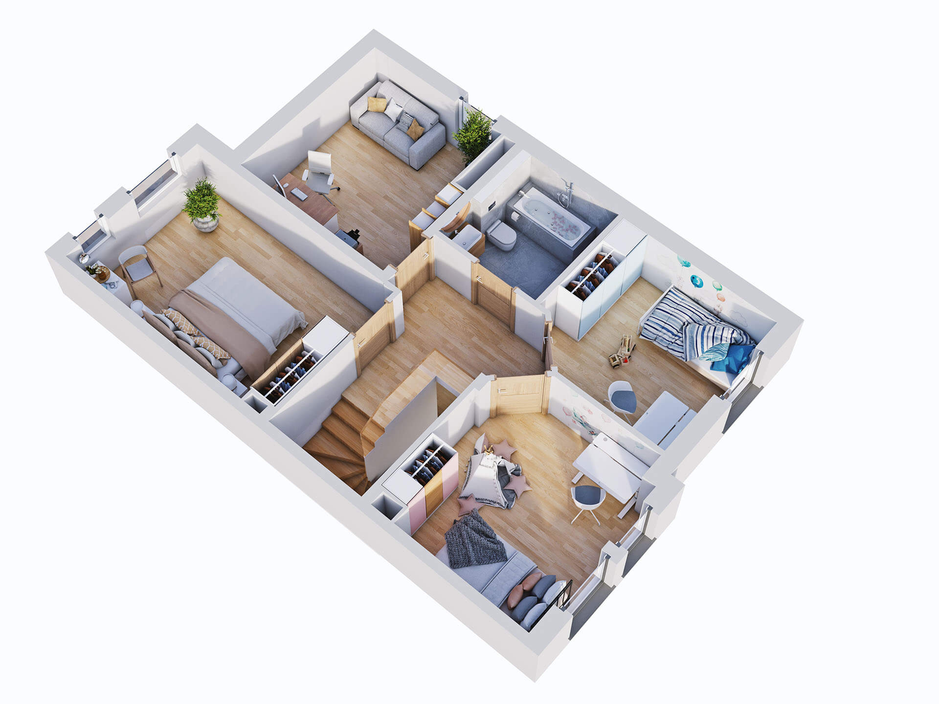 Ogromnym atutem domu Grand House Premium jest niewątpliwie całkowita swoboda aranżacji przestrzeni. Bez względu na to czy potrzebujesz dodatkowej sypialni, pokoju biurowego czy garderoby nasz architekt dopasuje dom do Twoich potrzeb.